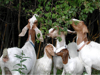 Goats, on the other hand, are mischievous and inquisitive. They do not respect boundaries and will browse on anything that strikes their fancy . . . sometimes to their destruction. They are rambunctious to the point of being uncontrollable at times and will not obey unless they decide they want to, often running after whom ever comes along–leaving their masters exasperated.