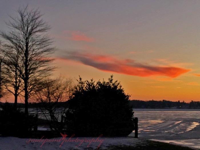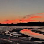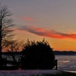 and there, in a reflection of sunset colors,