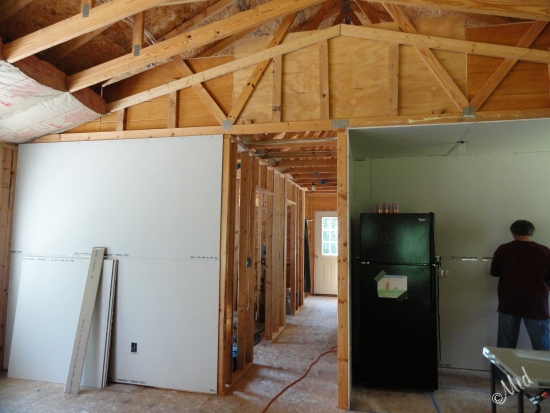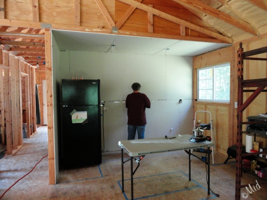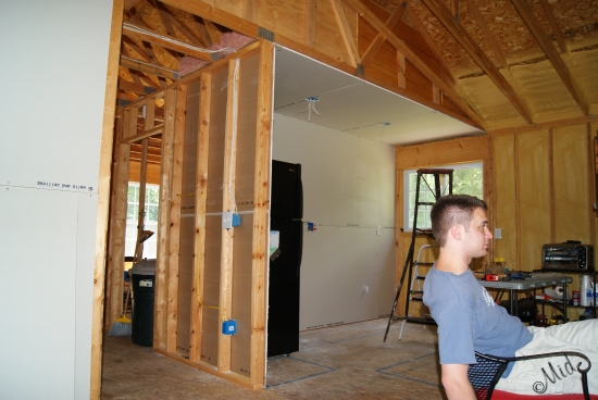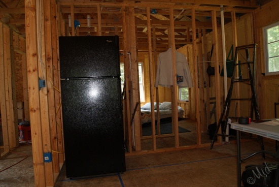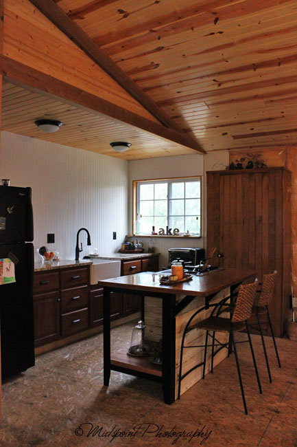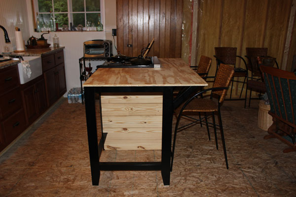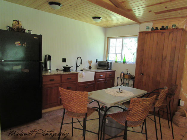 The Kitchen is almost done. Granite counter tops are done. The top on the island is just press board until Fred can get the boards finished. We also have a matching granite piece to insert.